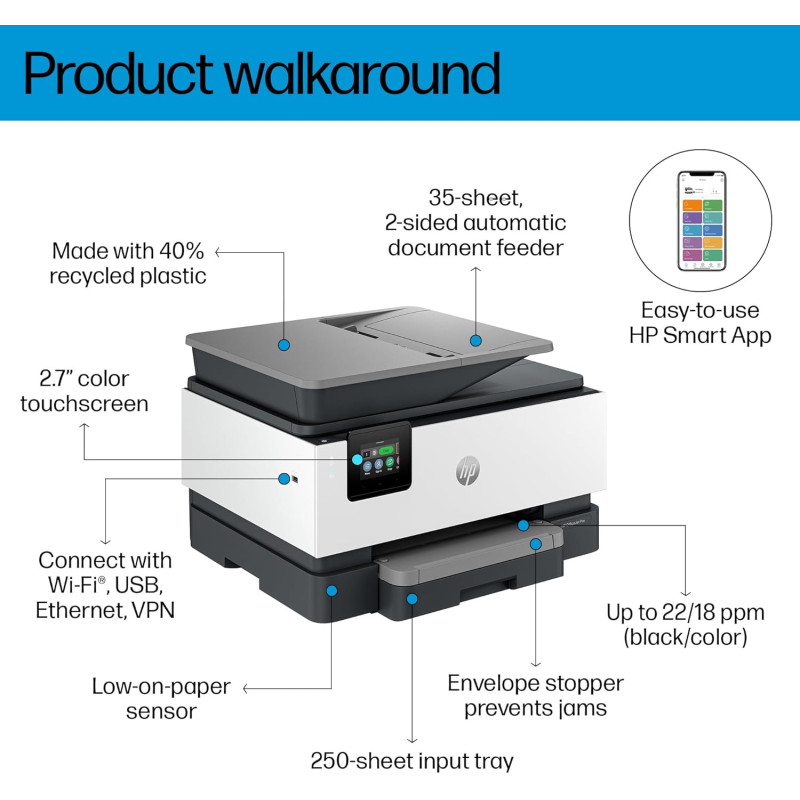 HP Office Jet Pro 9120 All-in-One Printer, Print-Copy-Scan-Fax, 22 ppm, Wi-Fi, Ethernet