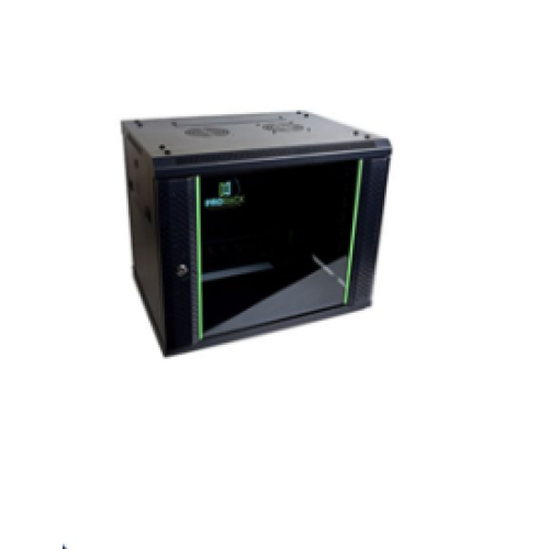 Prorack 9U 600*450 Wall mount cabinet with glass door, 1 fan, 1 shelf and 1 PDU 6 outlet - PR-W6409 - Rack